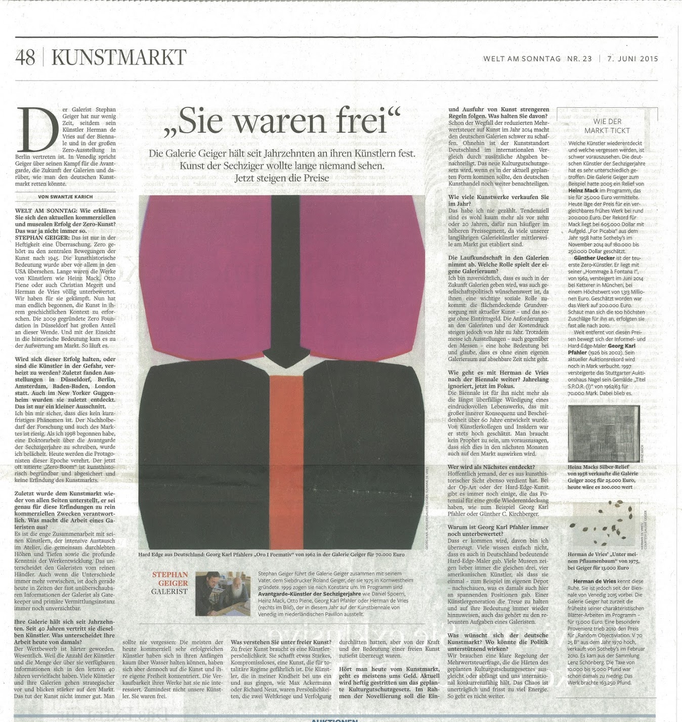Das ist nur in der Heftigkeit eine Überraschung. Zero gehört zu den zentralen Bewegungen der Kunst nach 1945. Die kunsthistorische Bedeutung wurde aber vor allem in den USA übersehen. Lange waren die Werke von Künstlern wie Heinz Mack, Otto Piene oder auch Christian Megert und Herman de Vries völlig unterbewertet. Wir haben für sie gekämpft. Nun hat man endlich begonnen, die Kunst in ihrem geschichtlichen Kontext zu erforschen. Die 2009 gegründete Zero Foundation in Düsseldorf hat großen Anteil an dieser Wende. Und mit der Einsicht in die historische Bedeutung kam es zu der Aufwertung am Markt. So läuft es.